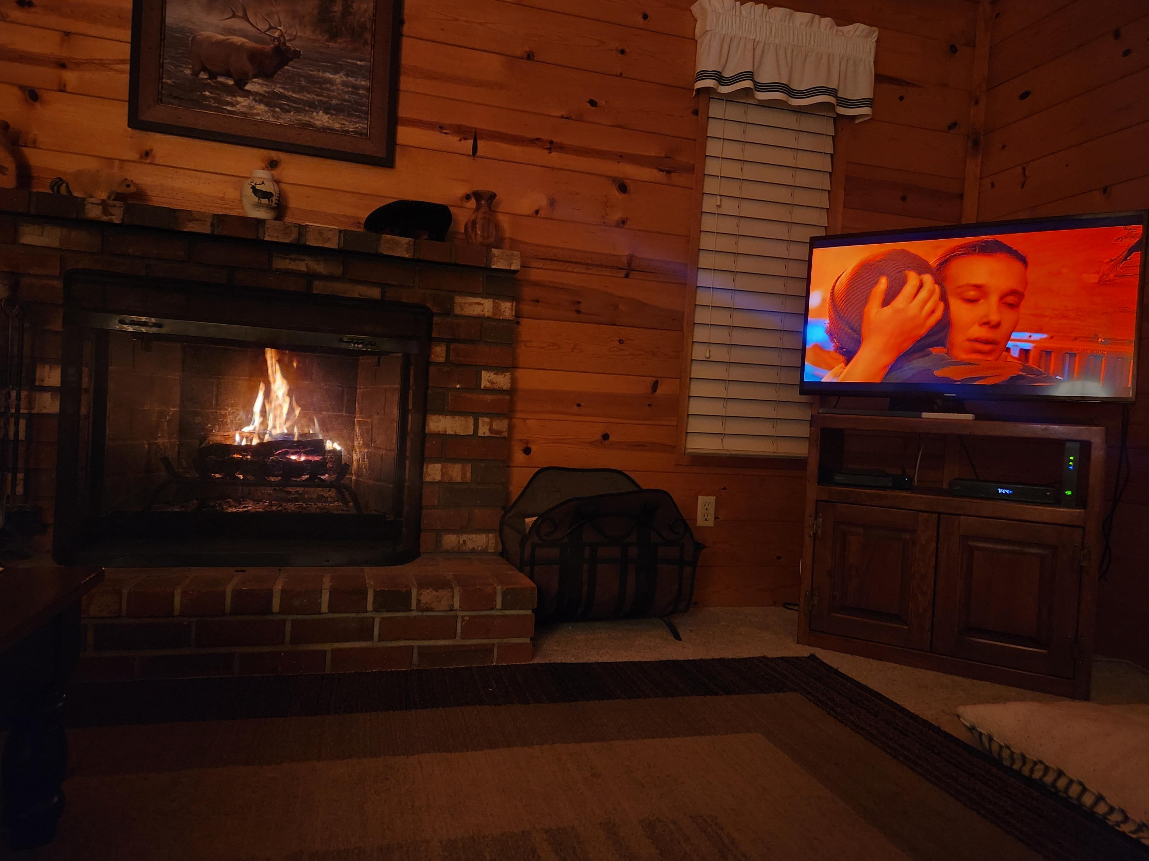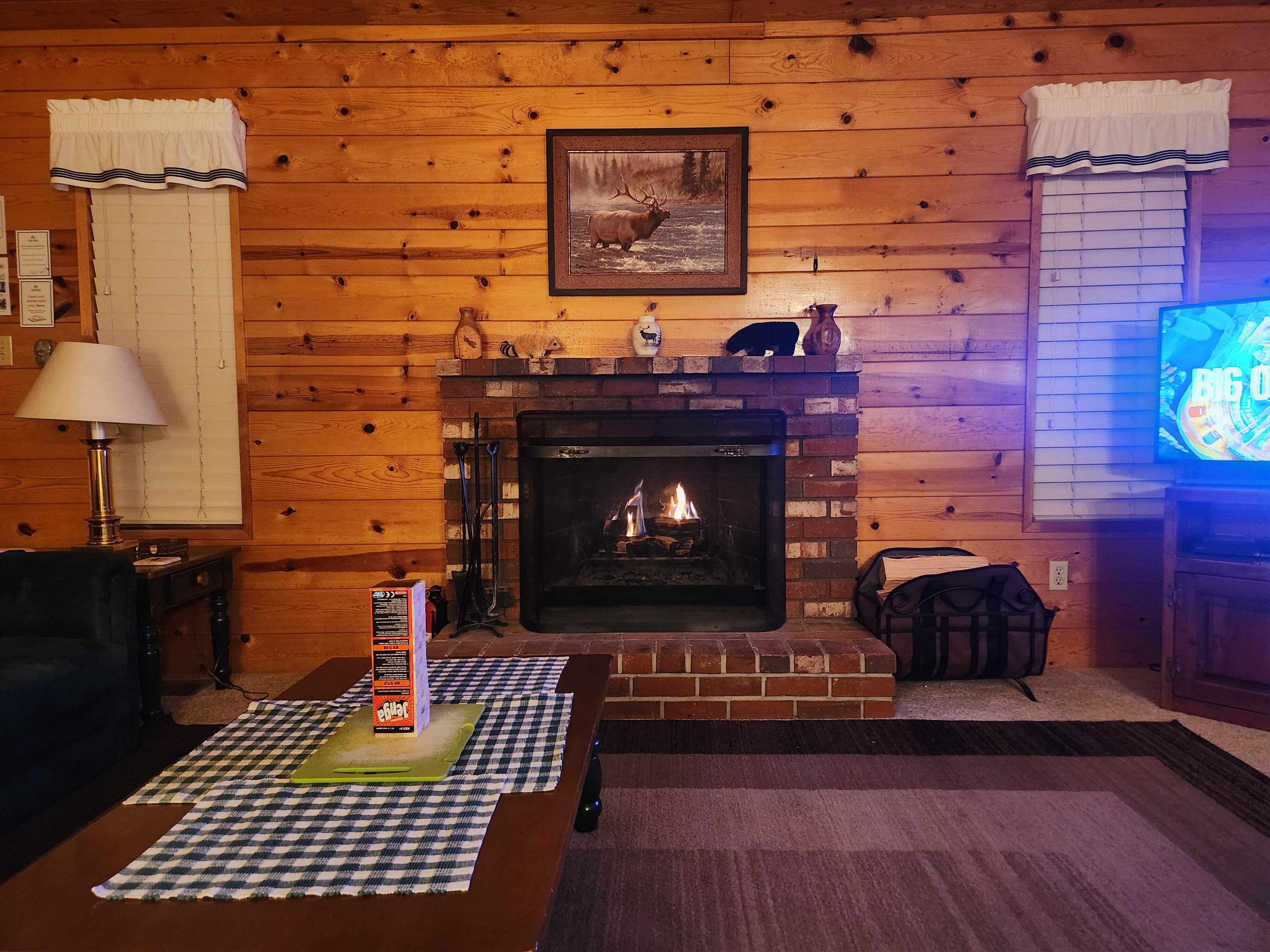 Located on a large and secluded lot, this lovely dog-friendly cabin is perfect for that much-needed escapade with your loved ones! Enjoy a private back deck equipped with an outdoor dining area, providing the best place to enjoy all of your meals al fresco. The backyard borders the county park with easy access to a variety of hiking trails and the Nature Center. The cozy interior offers classic rustic vibes with all wooded walls and a wood-burning brick fireplace for those cold nights and a flatscreen Smart TV. The kitchen is well equipped with a full-size fridge, stove, oven, microwave, coffee maker and grinder, and toaster oven. Other amenities include cable TV, a DVD player, a washer/dryer, high-speed internet and free WiFi, perfect for working from home, distance learning, and streaming. For summer comfort, the home offers a mini-split A/C system in the living room and multiple portable fans