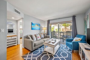 Welcome to Turtle Nest, a serene beachfront paradise on Amelia Island's second floor. Immerse yourself in coastal charm as you unwind in the spacious living area, equipped with a smart TV and cozy seating. The villa features two beautifully appointed bedrooms, each designed for comfort, plus a fully-equipped kitchen perfect for culinary creations.