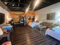 A lovely room! Very clean and spacious. Ideally situated for exploring the Buffalo River area but there is not much to Jasper itself. The Ozark Cafe and a pizza place are basically the only places to eat (but the Ozark Cafe is pretty good!). Harrison is fairly close if you want to venture out for more dining options. The beds are comfy and the larger-than-dorm-size refrigerator/freezer was much appreciated!Tracy was easy to reach and prompt to respond to my questions. Someone had commented about the road noise. Grandma’s Castle is located on the main road through town but we didn’t notice road noise (we do use a sound machine, though) except for the big rig that goes by at 4:30 each morning. I just happened to be awake at that time or I wouldn’t have heard it. A wonderful property that I highly recommend!