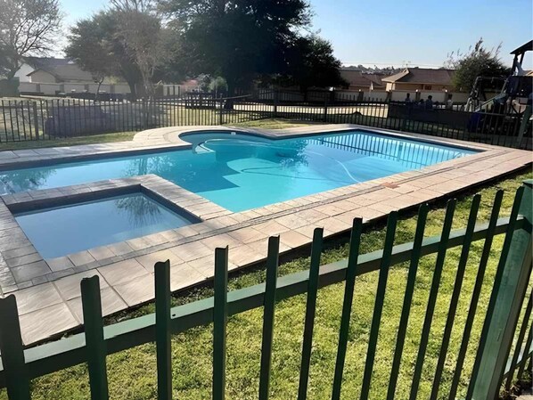 Nestled in Pretoria, Mello 3 Bedroom Villa offers a luxurious retreat with quality furnishings and modern features. Enjoy movie nights on the big screen or unwind at the reading nook; savor your morning coffee at the delightful coffee station, take a dip in the refreshing swimming pool or let kids play freely in the beautiful garden.