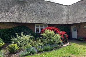 Escape to our charming thatched country house in the far north, surrounded by fields and meadows. With a cozy living room with fireplace, sauna, fitness room and a romantic double bedroom upstairs. Enjoy modern comforts with old-world charm.