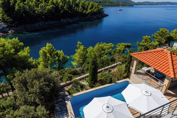 4-bedroom Beachvilla in bay Rasoha/Korčula with parking, pool,WiFi, fitness room