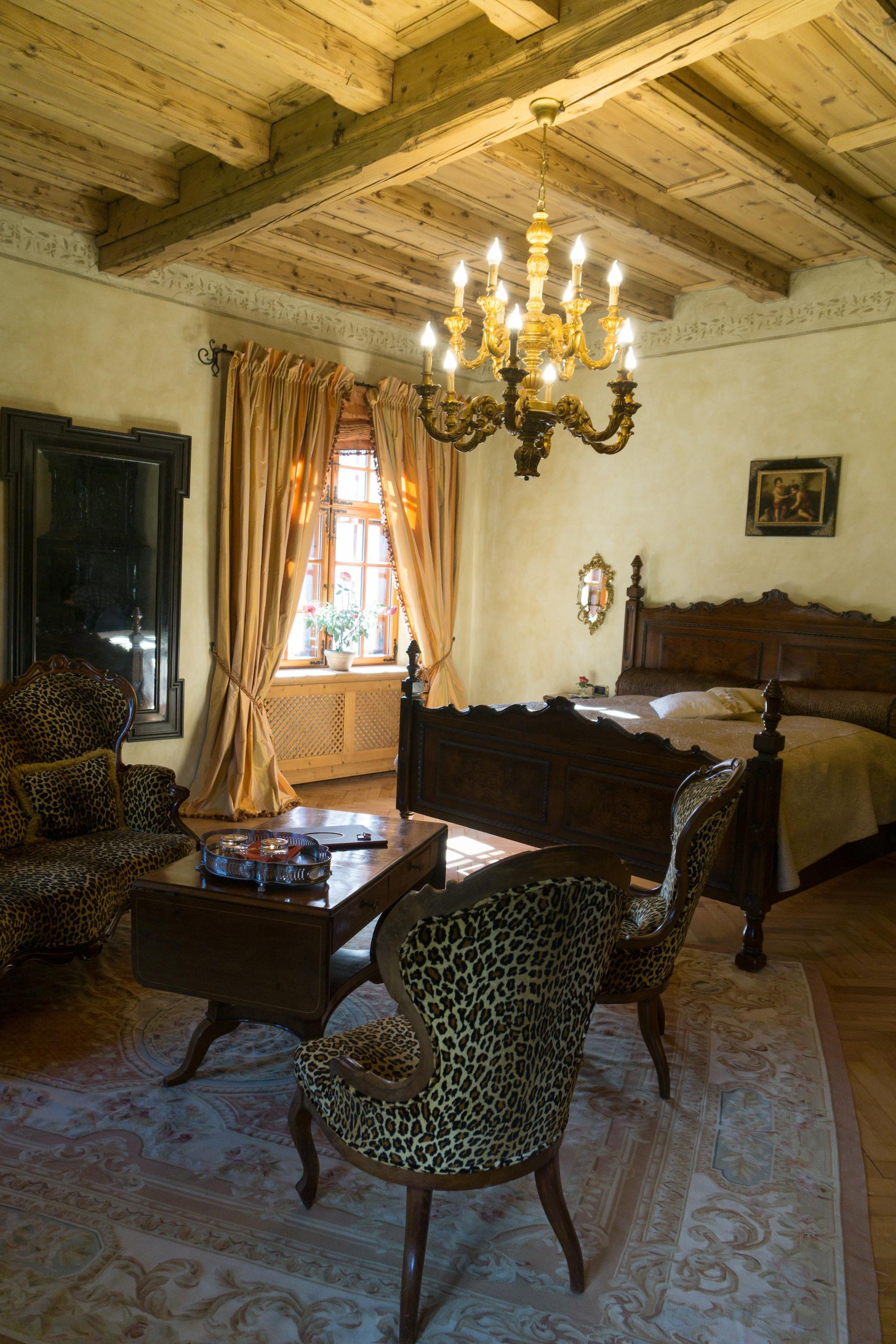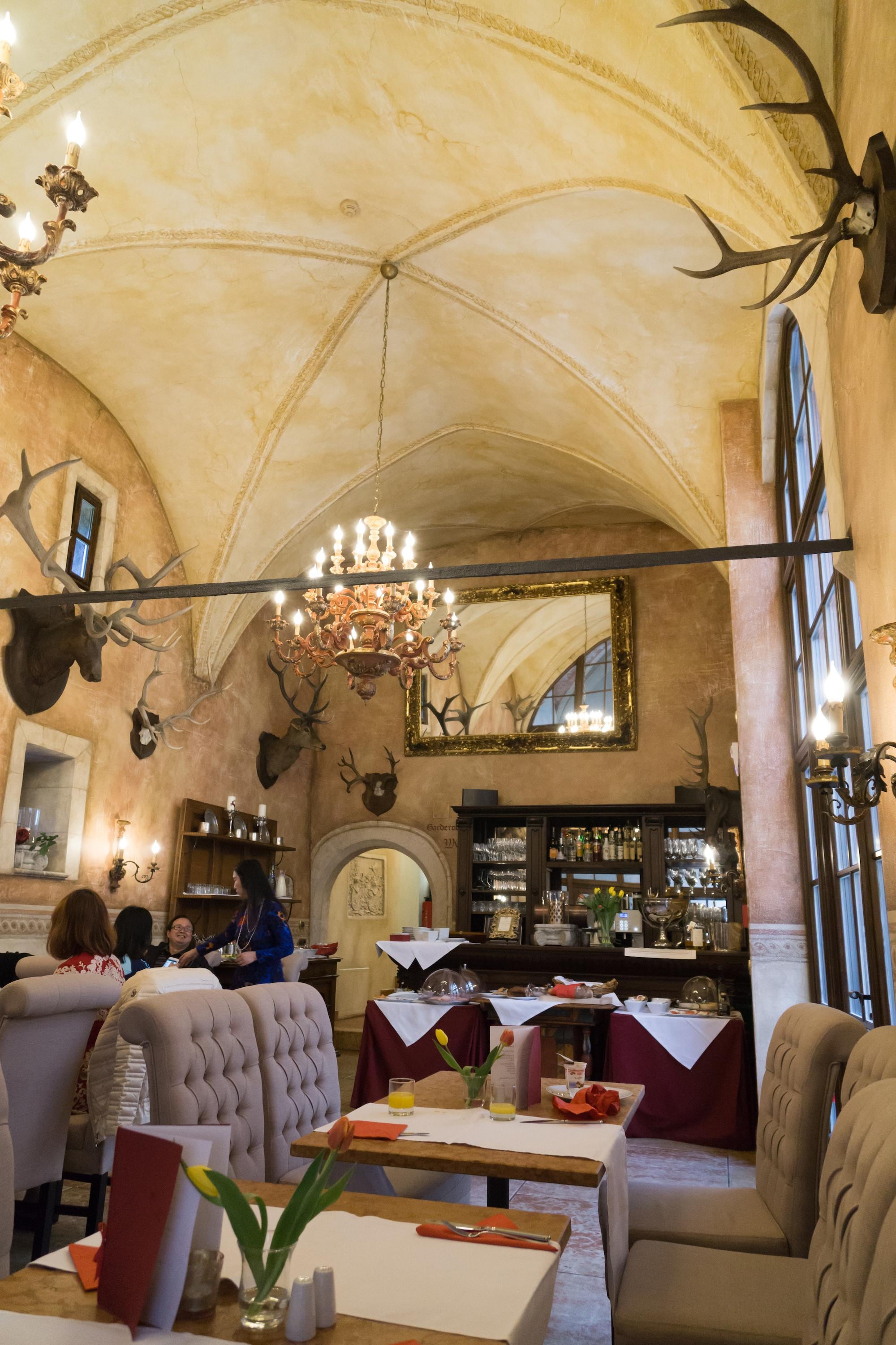 お城の塔の上の方にありました。部屋はとても広く、当時を偲ぶ家具やバスルームは一見です。特にバスルームはとてつもなく広く、バスタブとシャワーが別になっています。金装飾が貴族を思い起こさせる作りでした。朝食も結構美味しかったです。下にレストランがあってとても美味しいのですが、英語がほぼ通じないので注意。それから、周囲にはスーパーマーケットがほぼ無いです。