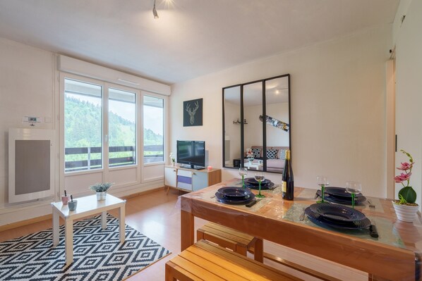 The studio is ideally located in La Bresse, in a very nice environment. You can benefit from all essential shops but also shops, restaurants, bars, market...