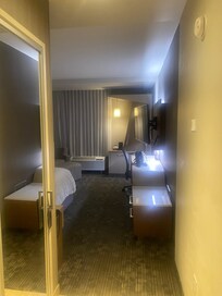 The room was ok, but there was trash on the floor in inconspicuous areas in the bedroom and bathroom. Hair was also in the shower and on the toilet. I was concerned about how much work was put into "cleaning" the space.