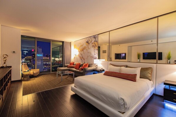Pros: amazing viewCons: air conditioning didn’t work. Room stayed between 75-80 degrees for a week. Nobody came to even attempt to fix it. Woke up sweating every night. The host was informed and he said he put in a request to fix, but it never happened. The room is old and falling apart. Toilet hardly flushes, faucet handles falling off shower. Needs a lot of updating. I had to leave a night early and stay at aria so I didn’t sweat my last night on vacation. I wasn’t offered any refund or discounts. I strongly recommend finding a different room and/or hotel to stay at. Palms place used to be pretty nice. It went down hill.