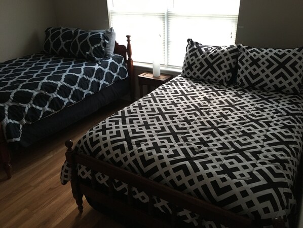 Convenient location with lots of amenities. Full kitchen, washer and dryer, good parking, quiet cul de sac. Was not bothered by the highway noise, I really only heard it when outside the house, did not hear when sleeping or inside. Owner is very easy to communicate with and leaves nice welcome gifts. Clean, but needs some deep cleaning (trim and front door need to be replaced, and a new coat of paint, which would give it 10 stars). The only other thing that was a little weird - there were clothes hanging in a few of the closets, maybe left from the last guest? Not sure, but we felt like we were staying in someone's house, not a rental. Personally, I would remove most of the extra decorations since its a rental, but thats my opinion which may not be others. Otherwise, a nice place to stay and great value.
