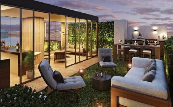 The whole group will be comfortable in this spacious and unique space. Enjoy indoor/outdoor living in this new condominium in the heart of Miraflores, walking distance to at least 8 world class restaurants, casinos & shopping. Equipped with a pizza oven, grill outdoor table and sitting area beneath a beautiful pergola you can spread out between 2 patios in this 2 bedroom, 2 bath stylish decorator-designed unit with fully stocked kitchen and designated work space. Late Check-In/Out Fee: $50.00.
