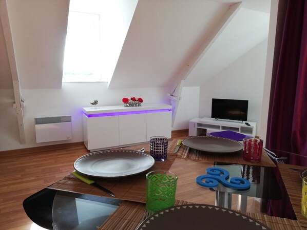 このアパートメントの客室には、コーヒー / ティーメーカーとアイロン / アイロン台が完備されています。キッチンには、冷蔵庫、コンロ、電子レンジ、独立したダイニングスペースがあります。バスルームにはシャワーがあります。