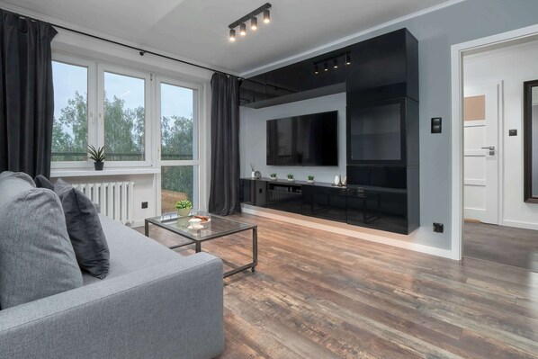 Sandomierska 1/9 | Łódź | Modern Studio | Balcony provides a water park and more. Guests can connect to in-room WiFi.