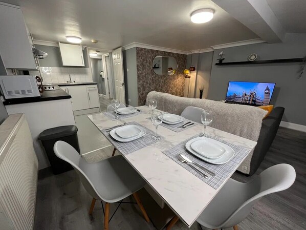 ロンドン アイから 3 km 圏内のアパートメントを備えたキッチン