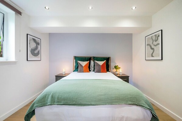 Welcome to your serene city escape, perfect for those who like a little built-in cardio with their stay. This modern apartment features a beautifully curated open-plan living space, complete with a sleek matte-black kitchen fitted with top appliances, including an induction hob, oven, microwave, and everything you need to cook in style.
