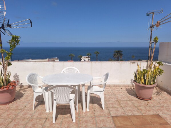 Nice and cozy apartment for a maximum of 3 guests, in the residential area of Romanitca II in Los Realejos. A very quiet place ideal for a small family. The apartment is located a few minutes drive from the main street of El Toscal and La Longuera, where you will find many supermarkets, pharmacies, restaurants and cafes. There are also two petrol stations very close. The apartment has a bedroom with a double bed and a built-in wardrobe. A complete bathroom, with bathtub and shower. A spacious living room with Smart TV, a sofa bed and a large window with sea views. The kitchen is fully equipped with an oven, gas cooker, kettle, coffee maker, toaster, hand blender. There is a wonderful roof terrace with sun loungers, a large parasol and an outside dining area. Fast and reliable wifi, perfect for digital nomads/workers