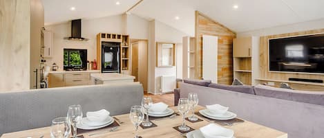 Escape to Popular Farm camping site, where this luxurious American RV awaits. Relax in the king-size master bedroom with ensuite or unwind in the lounge with a leather sofa that converts into a double bed. The kids can game on the Xbox while you cook up a storm in the fully-equipped kitchen.
