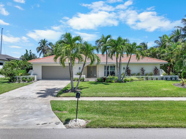 Tucked away on a palm-lined drive with lush tropical landscaping, this 2,300-square-foot waterfront retreat combines the charm of coastal living with the comforts of home. Spacious, stylish, and designed for both relaxation and fun, it’s the perfect setting for your family getaway. It sleeps six, with one king bed, one queen bed, two twin beds, and two bathrooms. It also comes with a two-car garage.