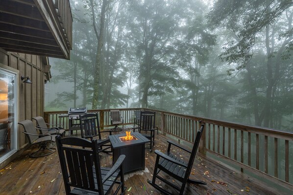 The deck is our favorite place to enjoy the mountains and relax. Toast up s’mores around the fire table, sip on bourbon in our bodega glasses, light up the propane grill, or relax in the hot tub. And deer love to visit the backyard during sun set and early in the morning. So keep a lookout while hanging on the deck.
