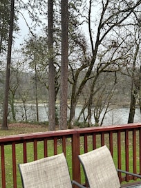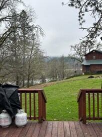 Recently remodeled and tastefully furnished, The River House is designed for your perfect getaway. Step outside to the expansive 16x40 ft deck overlooking the river, where you can fire up the gas grill for a delightful cookout. Enjoy family fun at the horseshoe pit with a stunning river view, or explore the vast grassy yard—perfect for tossing a football, playing flashlight tag, or practicing your golf swing.