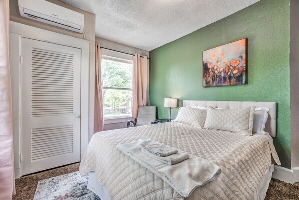 Relax in your Chic Midtown Apartment, a bright and cozy retreat in the heart of Memphis. This unit features 2 bedrooms and 1 bathroom, making it ideal for couples, families, or small groups. The living room is comfortably furnished with a flat screen TV for relaxing evenings. A fully equipped kitchen includes a stove, oven, microwave, refrigerator, toaster, kettle, and coffee maker providing everything you need to enjoy meals at home. Thoughtfully updated with simple, stylish décor, the apartment offers comfort and convenience within easy reach of Midtown’s top attractions.