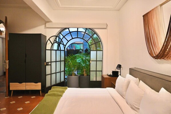 In the heart of Roma Norte, Santa Casa by Tasman is a historic gem where elegance and luxury blend seamlessly. Discover the vibrant neighborhood with its independent cafes, charming boutiques, and lively streets while retreating to your luxurious King room featuring a spacious bed, large desk and cozy armchair.