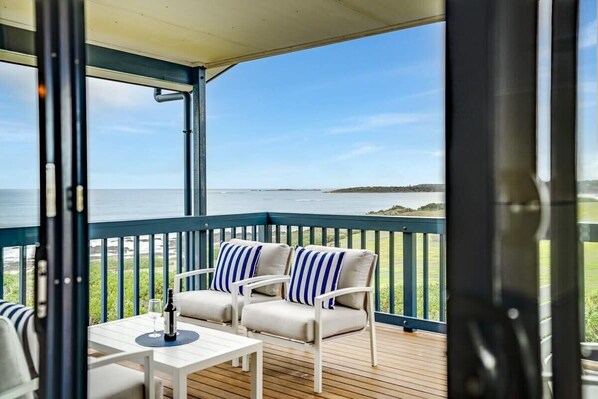 Step on to the undercover balcony to soak up the coast as far as the eye can see. You will not get better sea views than this. Plenty of comfortable seating or dining areas to enjoy a relaxing glass of wine with friends. Weber Q for the BBQ person who likes to cook up a feast.