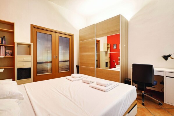 The two bedrooms are cosy and well organised. Both feature a double bed with fresh, comfortable bedding, a large wardrobe to store all your personal belongings, and a desk that provides a dedicated space to work or study. The rooms are designed to offer maximum comfort and functionality, creating a relaxing and productive environment.