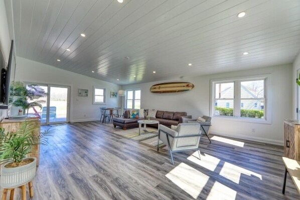 My family and I stayed at the Beach House over the 4th of July weekend. Overall, the home was beautiful, spacious, and had most of what we needed. We especially enjoyed the large dining room table and the fire pit — perfect for family gatherings. Also beautiful sunsets. However, we did have a few concerns. The cleanliness of the home didn’t quite meet expectations — particularly the master bathroom on the downstairs level, which wasn’t as clean as we would have hoped, and some areas were noticeably dusty.Additionally, I reached out to the property manager in advance to clarify the layout, specifically regarding the location of the bunk beds and their proximity to the upstairs master bedroom. I was told they were not located within the bedroom itself, but that turned out to be incorrect. The bunk beds were inside the master bedroom, which posed privacy issues and meant those beds went unused — a significant inconvenience that would have impacted our decision to rent had we known ahead of time.The location is okay — right off Coastal Highway — but it can be easy to miss when driving by. While it’s not as close to the beach as we hoped, it was still a pleasant stay overall.