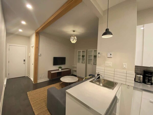 Welcome to our cozy one-bedroom condo, ideally located on the edge of the Plateau and downtown, offering the perfect balance between a lively urban atmosphere and a quiet residential neighborhood.