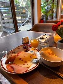Buffet breakfast (surcharge), self parking (surcharge), and luggage storage