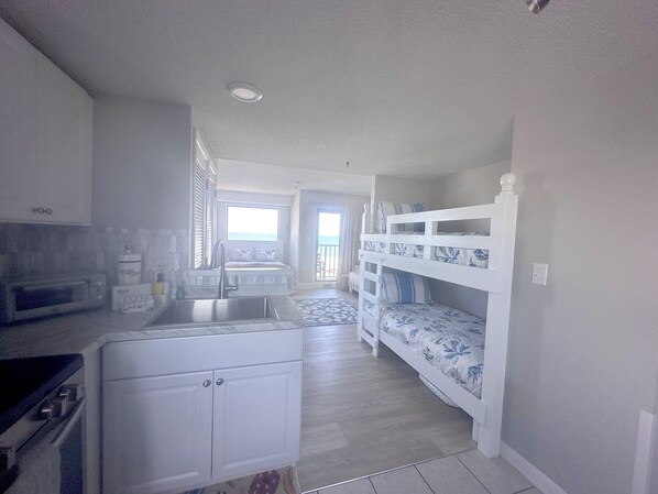 Direct Ocean Front Studio condo in Myrtle Beach Resortでは、冷房のほか、WiFi (無料)、ダイニングテーブルなどの心配りの行き届いたサービスを全室でご利用いただけます。
