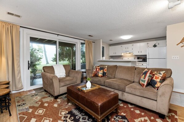 Lakefront condo with kitchen and patio