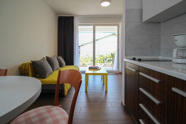 ゾランの客室には冷房が完備されています。客室には独立した応接スペースがあり、デスクが備えられています。この 3 つ星アパートメントには、冷蔵庫、コンロ、独立したダイニングスペース、調理器具と食器を備えたキッチンがあります。 バスルームには浴槽またはシャワーがあります。