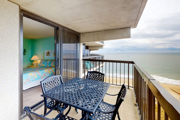 Fascinating beach condo with balcony, pools, game room, sauna & AC
