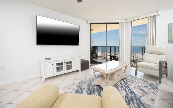 2バスルームのコンドミニアムを備えたこの素敵な内装の2ベッドルームには壁に興味深いアートワークがあり、バルコニーから湾の正面の印象的な景色を眺めることができます。 リビングエリアのソファと椅子は、カラフルで、豪華で、そして快適です。 一方の壁は完全に鏡に映っており、薄型テレビ、DVD / VCRプレー���ー、ステレオシステムをお楽しみいただけます。 あなたが料理をしたいのなら、美し���オーク材のキャビネッ����と花��岩のカウンタートップがあるキッチンには、すべての必需品が揃っています。 朝食バーには、楽しい一日を過ごす前に軽食をとるのに便利な3つのバースツールがあります。 ガラステーブルと6つの収納チェアでリラックスした屋内食事を楽しめます。 バルコニーにはテーブルと椅子が設置されており、絶えず変化する水とビーチの人々の景色を眺めることができます。 リラックスして休息する時間になると、マスターベッドルームにはアップグレードされたキングサイズベッド、薄型テレビ、バルコニーへのアクセスが備わっています。 付属の専用マスターバスルームには、洗面台、洗面化粧台、浴槽とシャワーの組み合わ���があります。 最初のゲスト用ベッドルームには、クイーンサイズベッド2台と壁掛け式薄型テレビが備わっています。 2番目の���スト��ベッドルームには、ツインサイズベッド2台とあなたの服を保存するための追加の家具が備わっています。 すべての寝室に新しいカーペットがあります。 2番目のバスルームには洗面化粧台と浴槽とシャワーの組み合わせがあります。