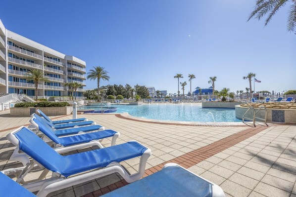 ウォーターフロントに位置する、ウォーターパークとホットタブ付きのコンドミニアム