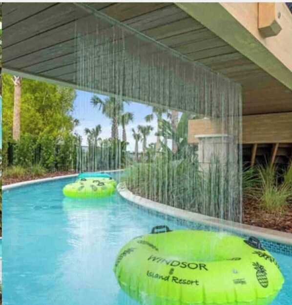 Windsor Island Resort offers outstanding amenities, including a modern clubhouse, resort-style pool, lazy river, water slides, tiki bar, fully equipped fitness center, sports courts, kids areas, game rooms, and more designed to entertain guests of all ages.
