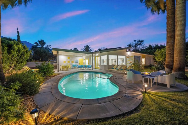 We loved staying at this luxurious, recently renovated, and beautifully appointed mid-century modern home. The pool, grounds and gardens were impeccably kept, a real oasis on a quiet street. The furnishings were tasteful. It had all the kitchen utensils, bedding, and other supplies we might need. At three bedrooms and three bathrooms it was very spacious for our family. It was only a five-minute drive or less to Palm Canyon Drive, where there were lots of restaurants and shopping. Grocery stores were close too. The management company was very responsive whenever we had any questions. We couldn’t believe how we lucked out with this home.