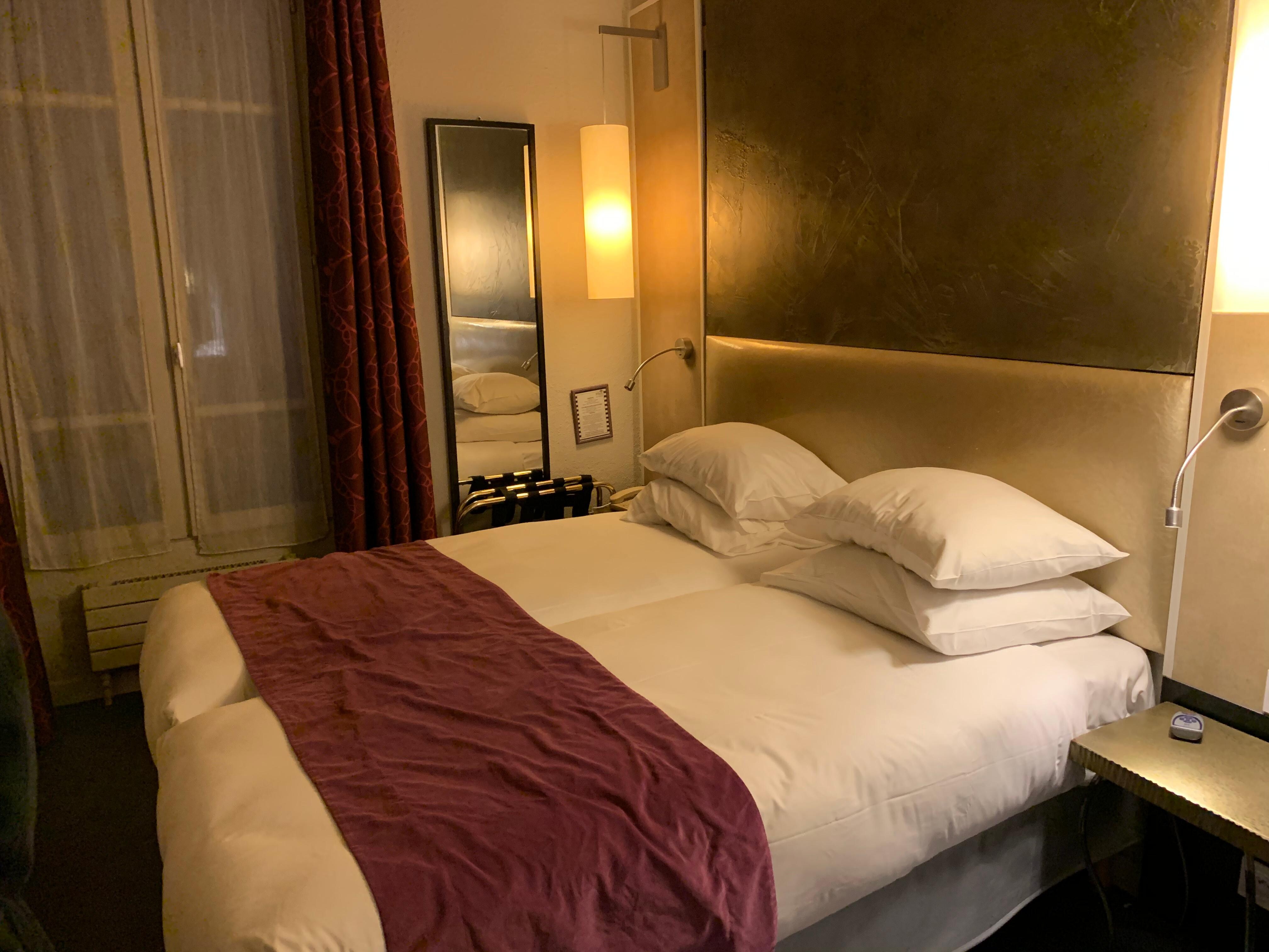 フロントスタッフはとても親切!種箔客の顔もしっかりと覚えていてくれていました。 お部屋もきれいで、毎日の清掃もしっかりとしていてくれます。 パリ市内であれば仕方ないですが、お部屋が狭いので、スーツケースを広げられるのは確実に1つのみです。