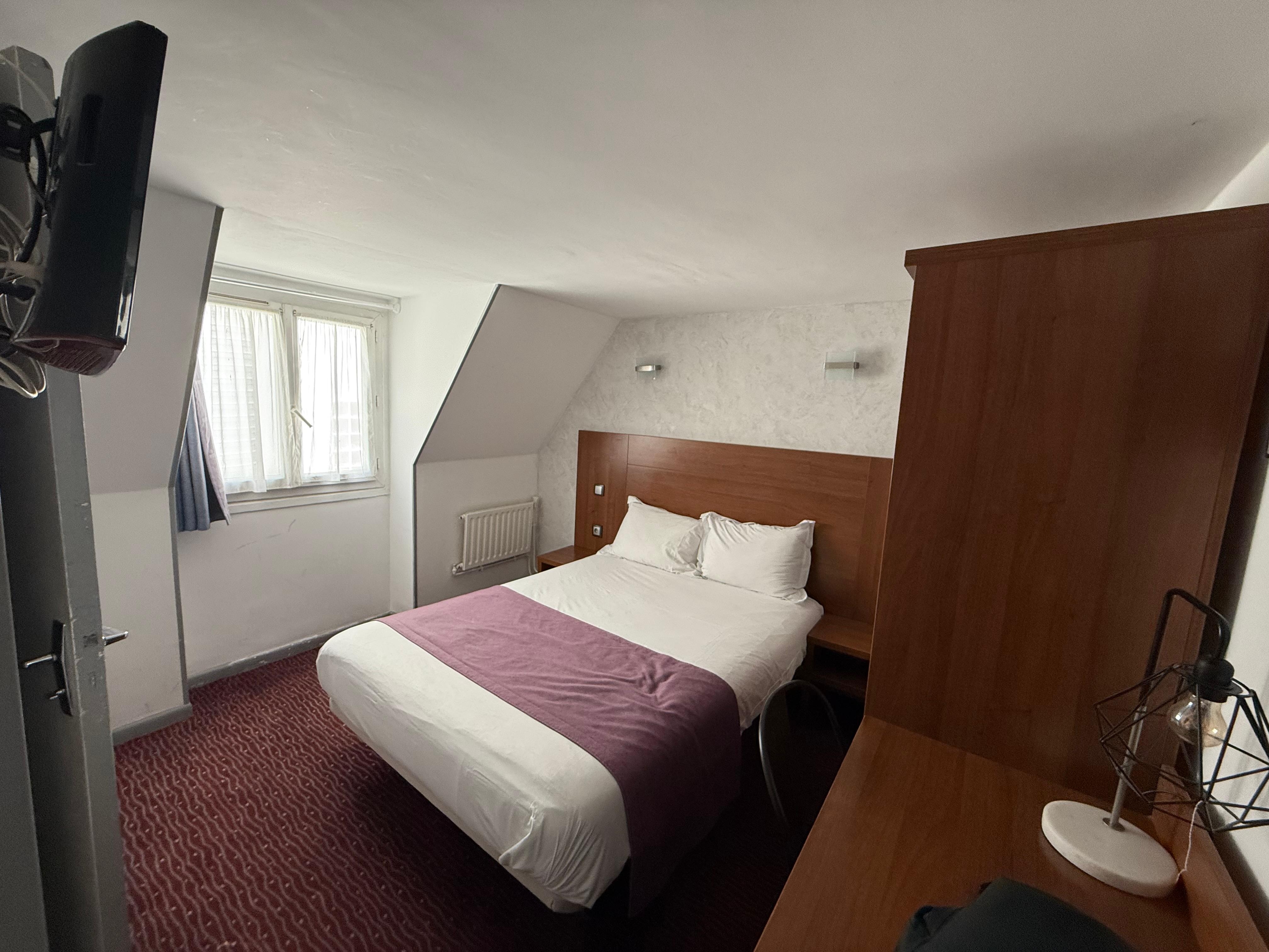 Excellent location, just off of Place de la Republique. Staff welcoming and bilingual (respected our wish to speak French). Rooms are dated but cleaned daily and the ensuite is tiny. Bed leg was broken but repaired.