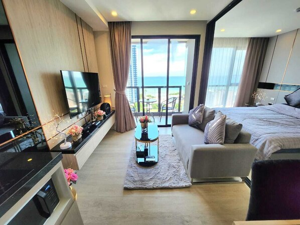 Escape to a coastal gem unlike any other! Our 1-bedroom suite is a true embodiment of luxury and style. Greet each day with mesmerizing full sea views that'll leave you in awe. Embrace the convenience of a fully equipped kitchen and the added bonus of a washing machine. Plus, you'll be just a short 200-meter walk away from the inviting sea. And that's not all – the building comes packed with awesome amenities like a pool and gym. All of this nestled in the sought-after location of Pattaya, Pratumnak. Your exquisite seaside retreat awaits your arrival.