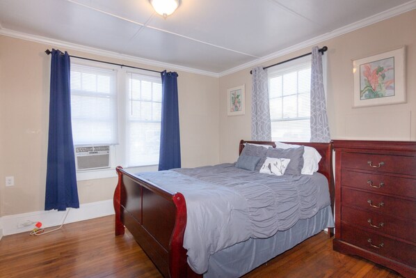 In the Historic North Hill District of Downtown Pensacola, Shore Break offers a charming getaway with original hardwood flooring and a bright green bathroom. This quaint space provides easy access to I-110, Pensacola Beach and Naval Air Station. A fully stocked kitchen is available along with toiletries, linens, beach supplies.