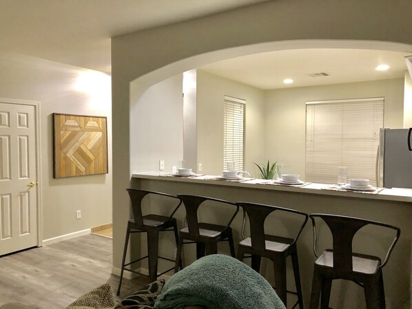 新しい木の板のフローリング、家電製品、塗料、家具、クォーツカウンター。 この新しく改造された1階建ての3ベッドルーム1300平方フィートのユニットは、あなたが夢見たような滞在を待っています。 安全で安心、しかもショッピング、ゴルフ、映画館、食料品店、たくさんのレストランの真ん中にあります。 このゲートコミュニティには、米国およびカナダ各地から多くの冬の訪問者が住んでいます。 温水ジャグジー付きの輝くコミュニティプールは徒歩圏内です。 家の中には、60インチテレビのある大きな素晴らしい部屋があります。 すべての必需品を備えた広々としたキッチン。 裏庭は、人工芝と素晴らしい集会エリアを備えた低メンテナンスです。 アリゾナの涼しい冬の温度で、広々としたバックパティオで何晩も過ごします。 キングベッドとリゾートスタイルのマットレスと寝具を備えた大きなマスターは、素晴らしい夜の眠りをお届けします。 追加の2部屋には、ゲストまたは子供用の天井ファンとクイーンベッドがあります。