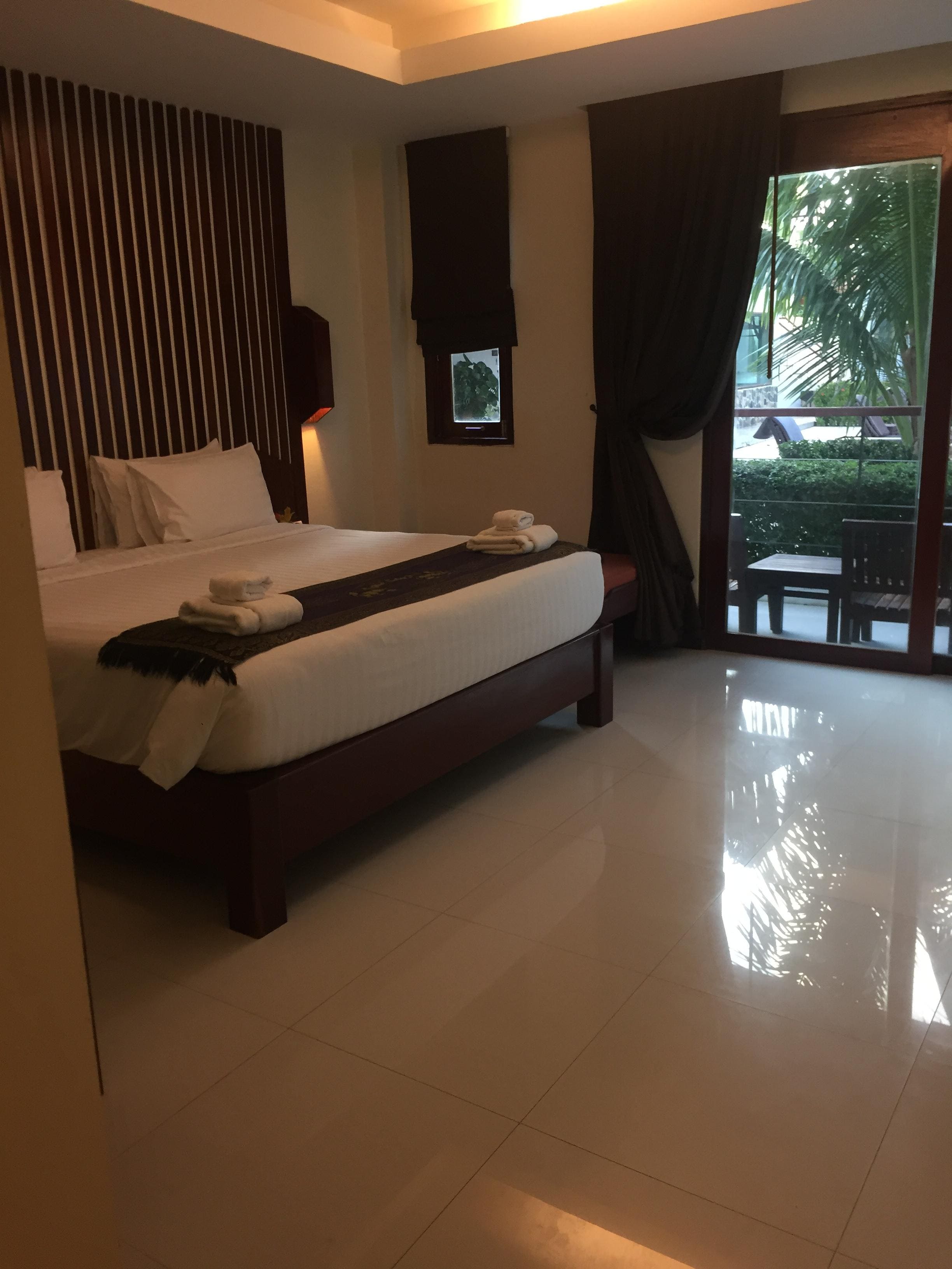 空港から近く、送迎もしてくれるので早朝、深夜便には非常に便利です。 空港には10分くらいで、事前にお願いしておけばたしか150バーツで送迎してくれます。 部屋の前にはプールがあり、部屋も綺麗でリゾート感覚を味わえます。 ご飯とかは若干高め。 エアコンから水が漏れてきたのですが、電話したらすぐに修理にきてくれ、対応も早いです。 最終的にはまた漏れてきてしまいましたが… スタッフもみんな親切で、居心地が良かったです。