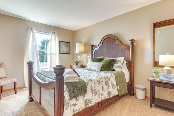 バーベキューグリル、セルフパーキング (無料)、および共用エリアでの WiFi (無料)がある禁煙のコテージです。 コテージでは、暖炉のほかに、キッチン、乾燥機もご利用いただけます。便利な3 室のバスルーム、電子レンジのほか、コンロ、テレビもご利用いただけます。