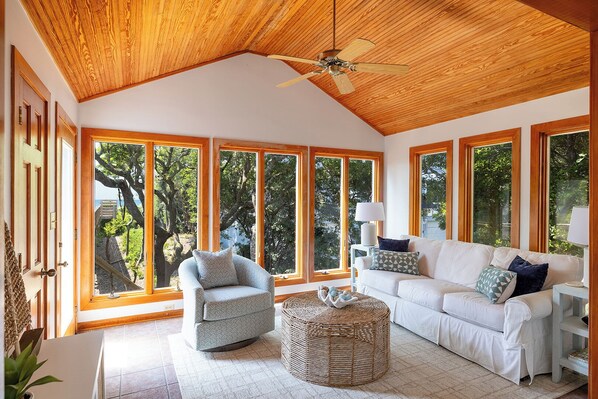 Nestled in the Maritime Forest, The Seacluded Tree House offers an oceanfront retreat with private beach access. Unwind on the sunroom porch, relax after a day at the beach in the open concept living area or rejuvenate with a spa tub in one of four bedrooms.