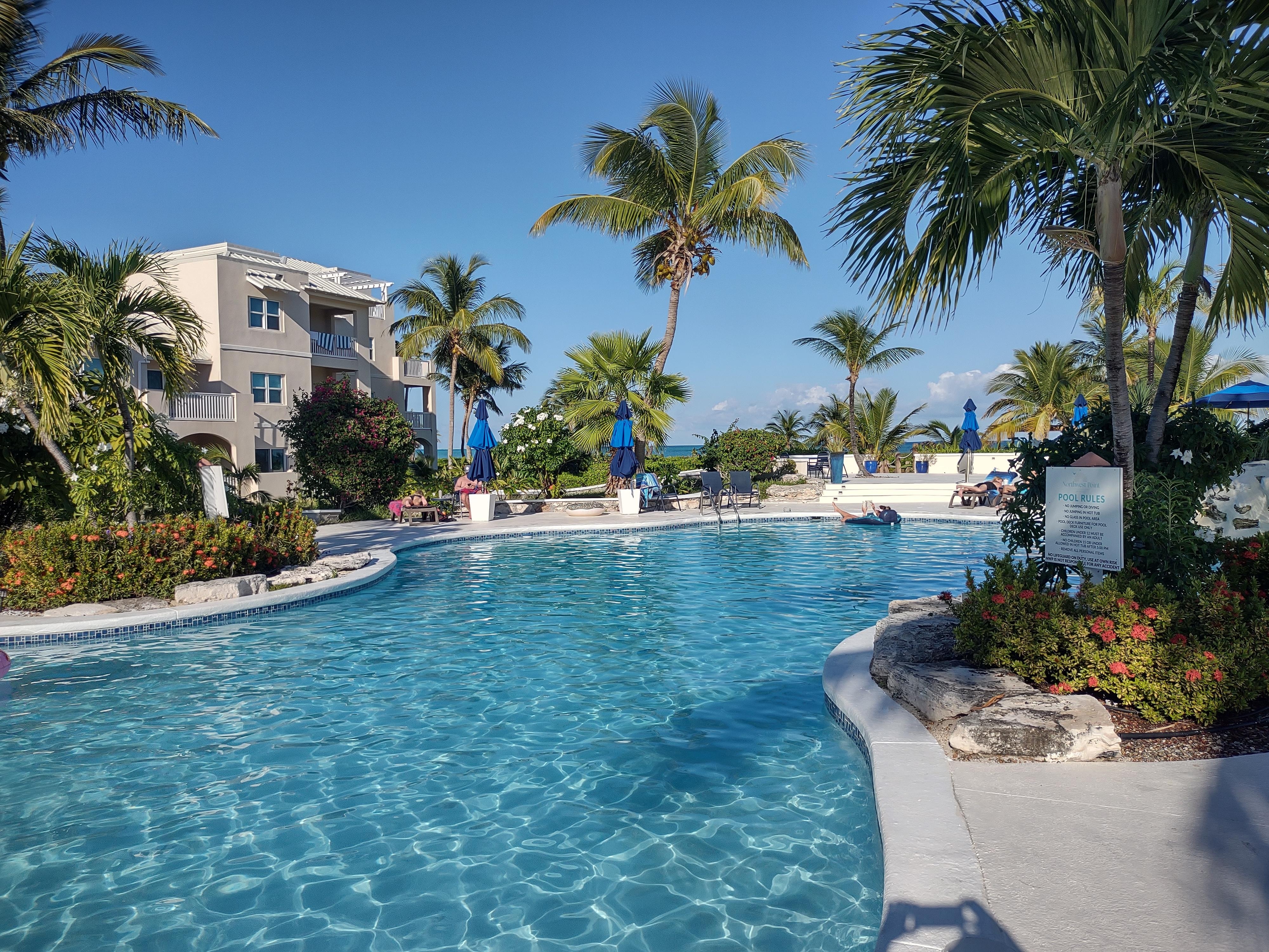 屋外プールを備えた、ノースウェスト・ポイント国立公園の近くのビーチで家族団らん