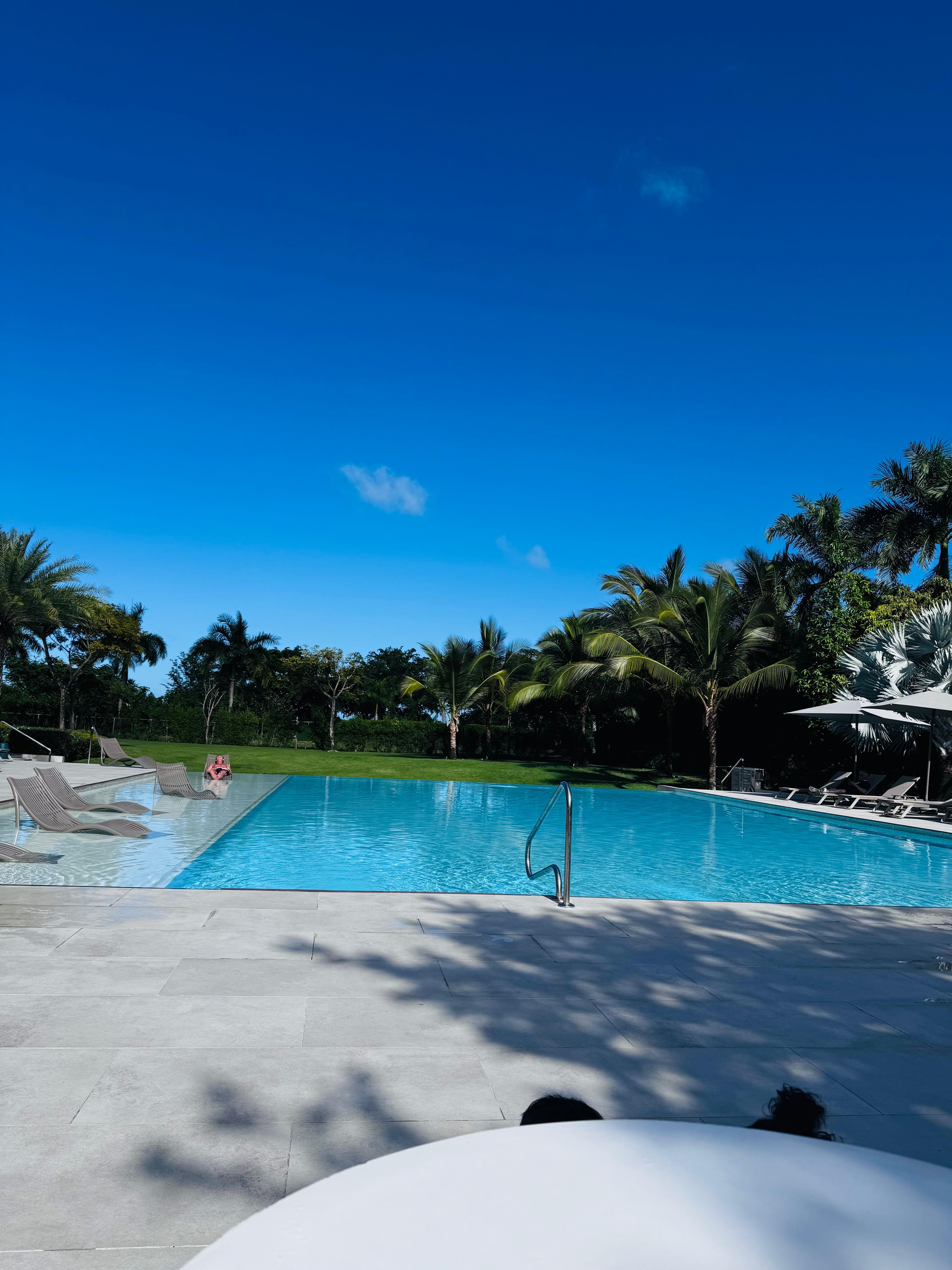 Travelers find a peaceful retreat near Downtown Punta Cana where they can relax by the pool in refreshing cabanas or stay productive in coworking spaces