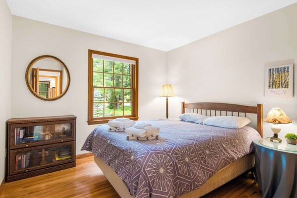 Enjoy a charming Northern Michigan getaway at Shellway Cottage, just a short walk (2/10 mile) to public access to Torch Lake. Perfect for families or groups, this home features hardwood floors, a spacious living area, and cozy sleeping arrangements with five beds, including bunk beds for the kids. Relax on the back deck, prepare meals in the fully equipped kitchen, and make lasting memories just minutes from the water. Guests can also bring a boat and use the nearby launch for lake adventures.
