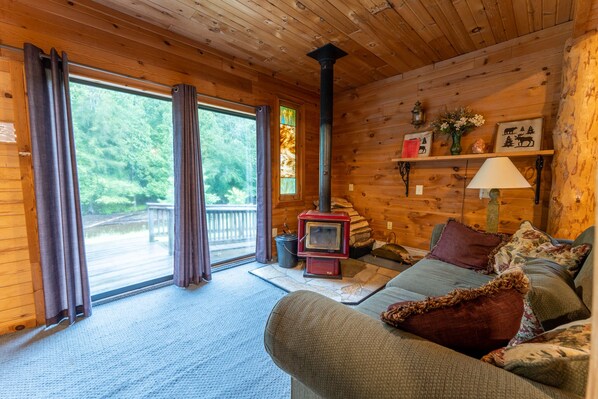 Fire Pit: Yes, we have a large fire pit, with the beautiful view of the Rapid River. You can find plenty of fallen wood throughout the private 40 acres. You can also ask us to bring a truck bed of wood (face chord) for specifically your bonfires ($100 additional for a 18"x4'x8" face chord)