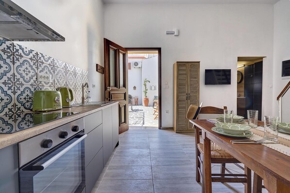 Vasileios Moments – Eva is a cozy and stylish apartment in the center of Rhodes Town, perfect for up to 4 guests. The apartment is set on two levels, with a warm attic bedroom featuring a double bed, and a comfortable double sofa bed on the ground floor. It includes a modern bathroom with a walk-in shower, a fully equipped kitchen with all the essentials for cooking, and a flat-screen TV for relaxing. Outside, guests can enjoy a lovely shared garden and patio area with comfortable seating, a dining space, an outdoor shower, and a charcoal BBQ – ideal for enjoying meals and warm evenings outdoors. Free street parking is available nearby. With its central location and welcoming atmosphere, Eva is a perfect base for exploring Rhodes.