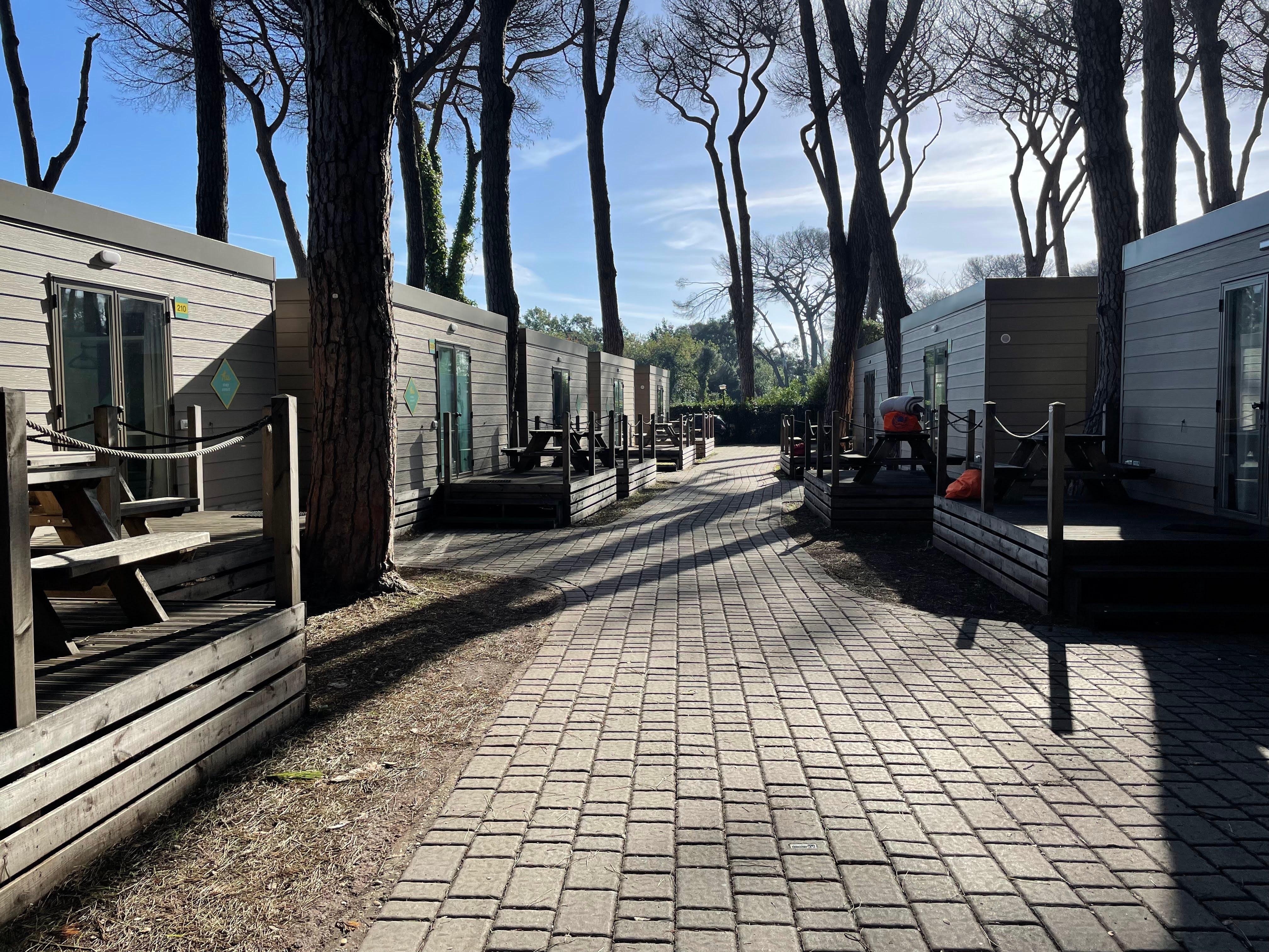 この宿泊施設はキャンプ場で、見た限りバンガロー、テントスペース(オートキャンプ可)がありました。 車は施設内に駐車出来ます。 私はフィウミチーノ空港から近いためバンガローに1泊しましたが、施設内には長期滞在者を多く見掛けました。 バンガローには最低限の設備が備わっており、冷蔵庫、シャワーとトイレも問題なく利用できました。 (涼しかったためエアコンは利用しませんでした) Wi-Fiは有料とのことだったため利用しませんでした。 レストランやバール、テニスコートやプールもあるため、一日を施設内で過ごすこともできると思います。 (今回はいずれの施設も利用しませんでした) 比較的遅めのチェックイン、早めのチェックアウトにも対応してもらえ、 受付の方も大変愛想がよくフレンドリーで親切な方々でした。 ただし、あくまでキャンプ場なのでご注意下さい。